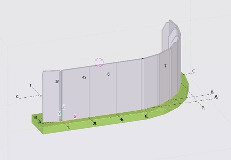 Ефективно използване на стоманобетонното П образно сечение, дебелина на стената 14см, на ребрата – от 12 до 10см.